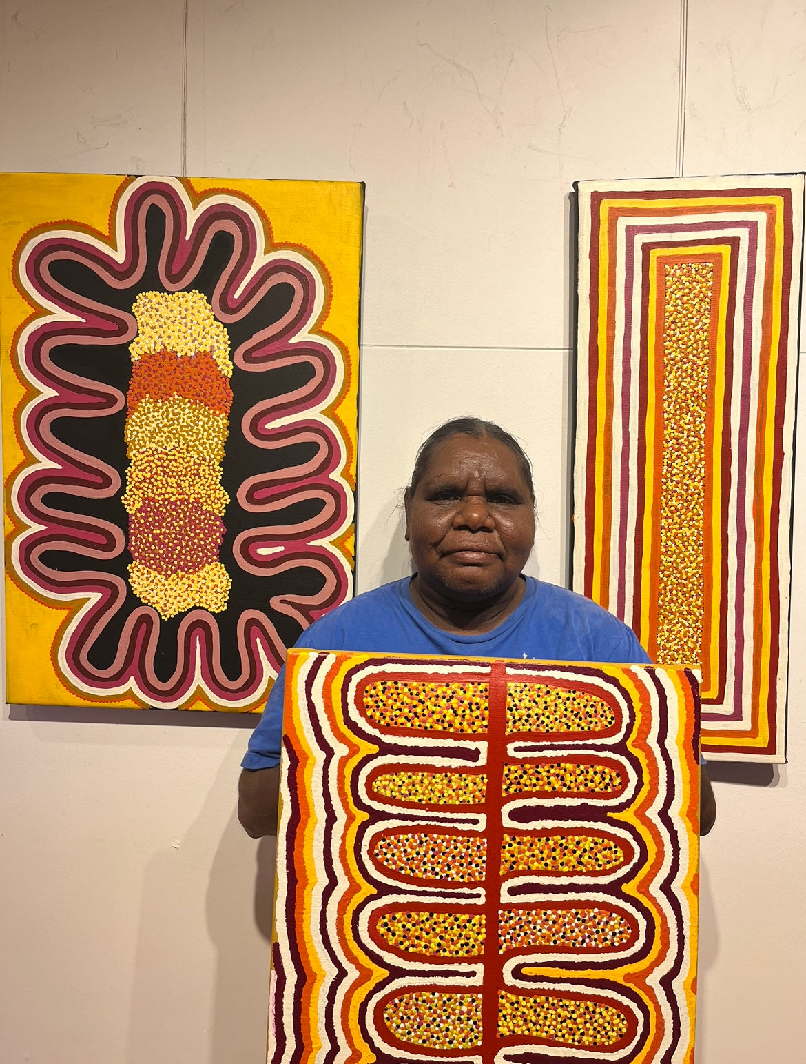 Melissa is a talented emerging artist working with Warlayirti Artists in the East Kimberley, Western Australia. A proud Kukatja/Ngardiwoman, Melissa is part of a new generation of Aboriginal artists carrying forward powerful stories, deep cultural knowledge, and strong connections to Country through contemporary visual art.
